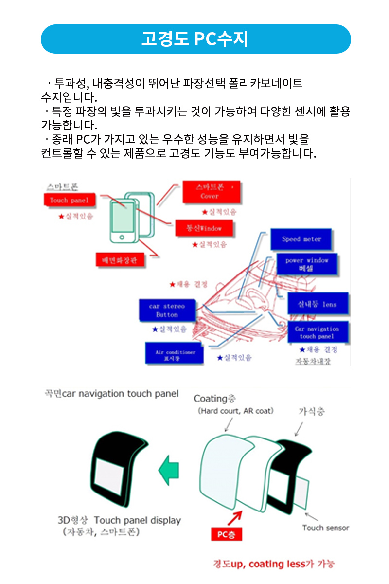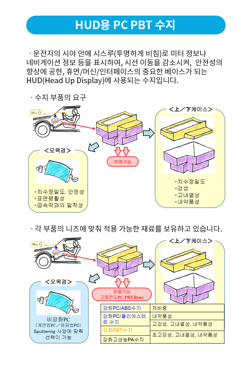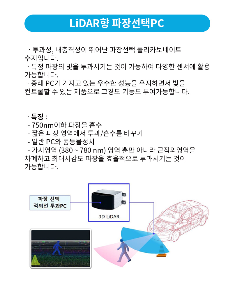 HUD용 PC PBT 수지, LiDAR향 파장선택PC