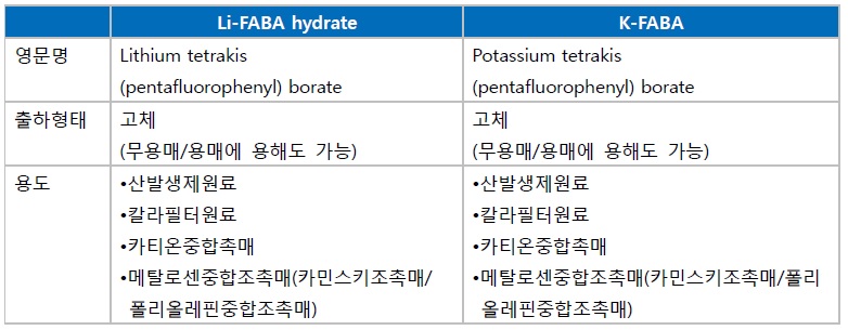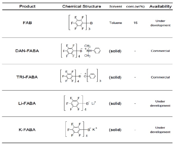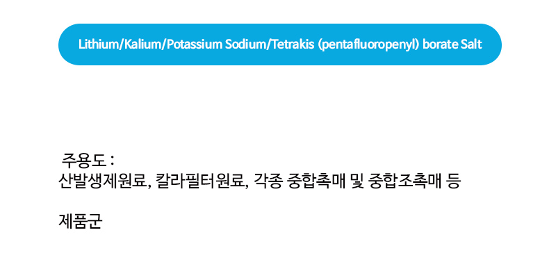 KrF Resist monomer, Lithium/Kalium/Potassium Sodium/Tetrakis (pentafluoropenyl) borate Salt , Poly-NaSS (폴리에틸렌 술폰산 나트륨), Tris (pentafluoropenyl) Borane